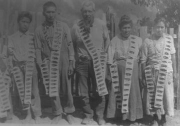 Ceremonial sashes decorated with redheaded woodpecker scalps