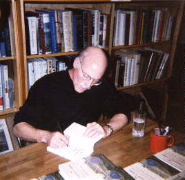 Photo of  Mr. WolffTobias Wolff signs copies of "In Pharaoh's Army" at Black Oak Books in Berkeley, CA., November 1995
