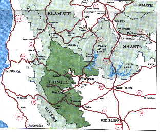 We are located in northwest California, in the Trinity Alps area between Eureka and Redding. We are located in parts of Humboldt and Trinity counties. Our territory is within parts of the Six Rivers National Forest and the Shasta-Trinity National Forest.